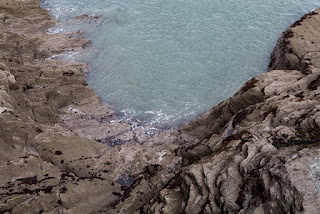 Round the other side of the headland, we came to Baggy Point. Martin was delighted to see one of the most exciting (i.e. terrifying) rock climbs he's every done again, "Kinky Boots" and told his story (yet again) about the start to the route which involves quite literally, falling forwards over a zawn, to lean on the other side, find hand or finger holds and then swing your feet across. Gulp!